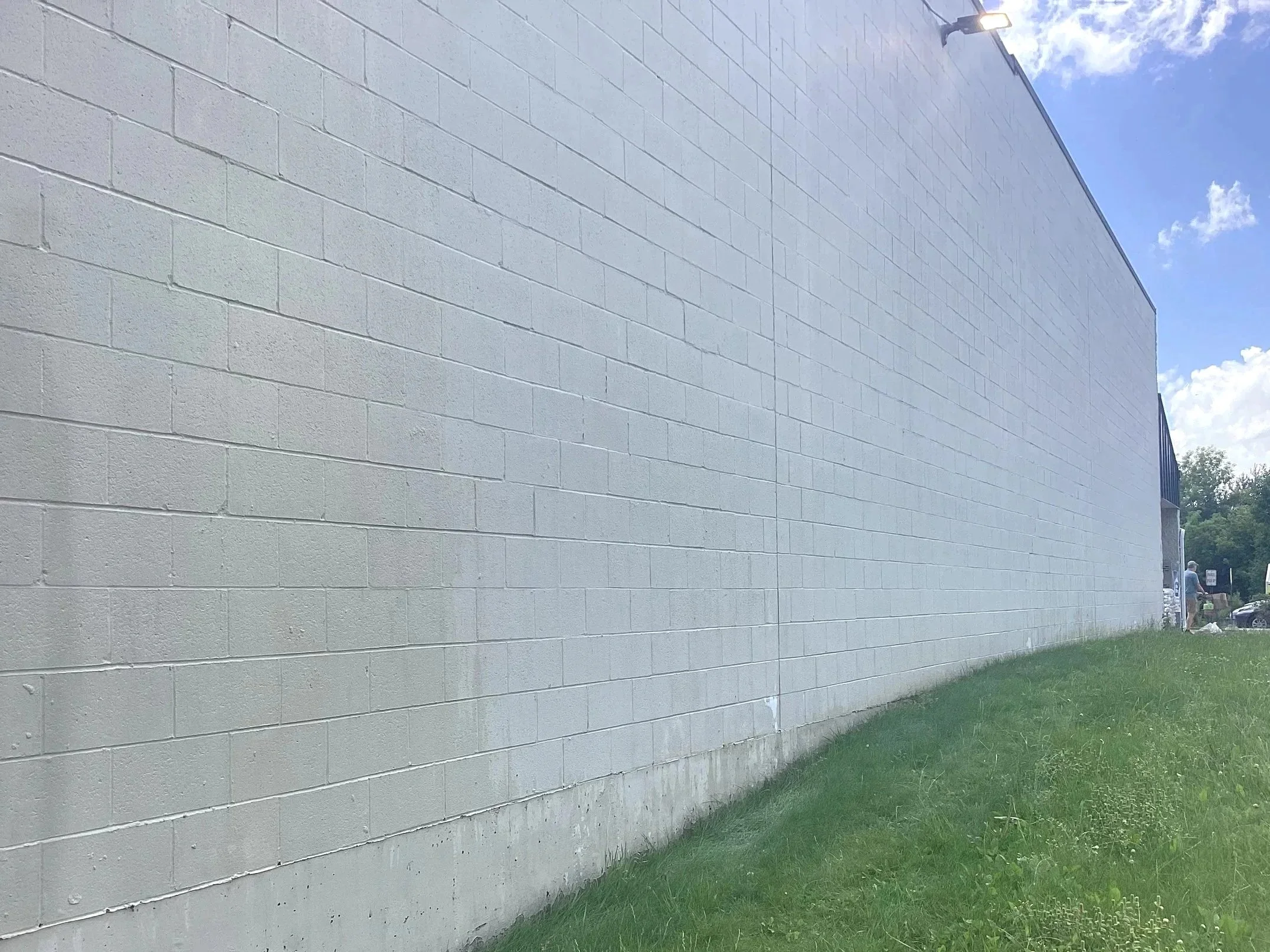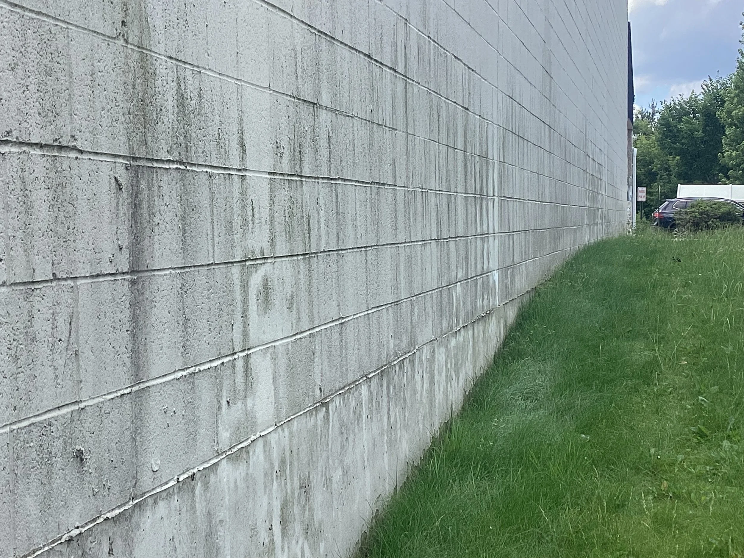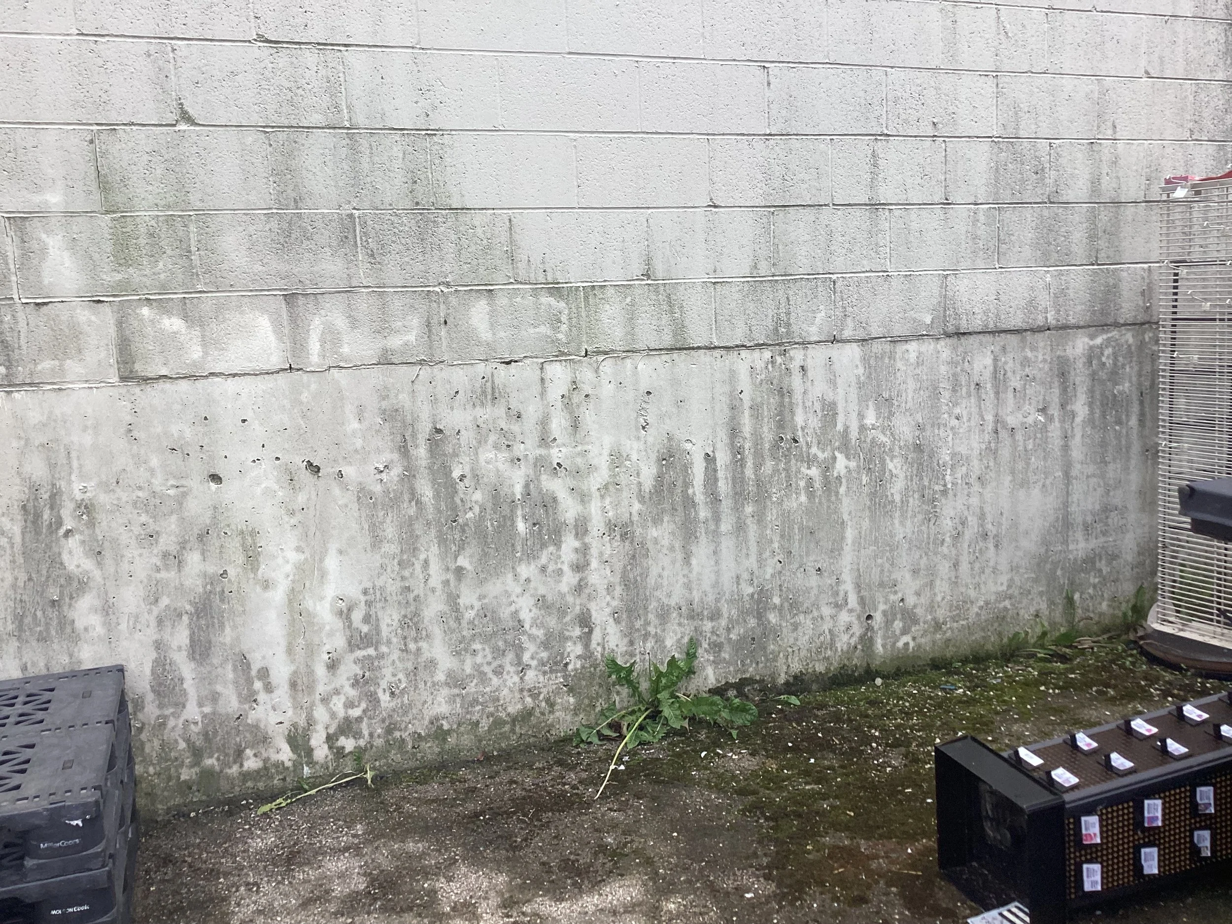 The concrete wall of this grocery store was covered with dirt, mold and soot. Within a few hours, we were able to restore it to pristine condition.